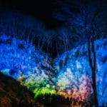 カラフルな光に照らされ、漆黒の闇の中に浮き上がる樹氷の姿は、まるでファンタジーの世界に迷い込んだよう。