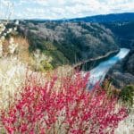 2月下旬から3月下旬にかけて、白や紅、ピンクなど、約2万本の梅が山肌を埋め尽くすように咲き誇ります。